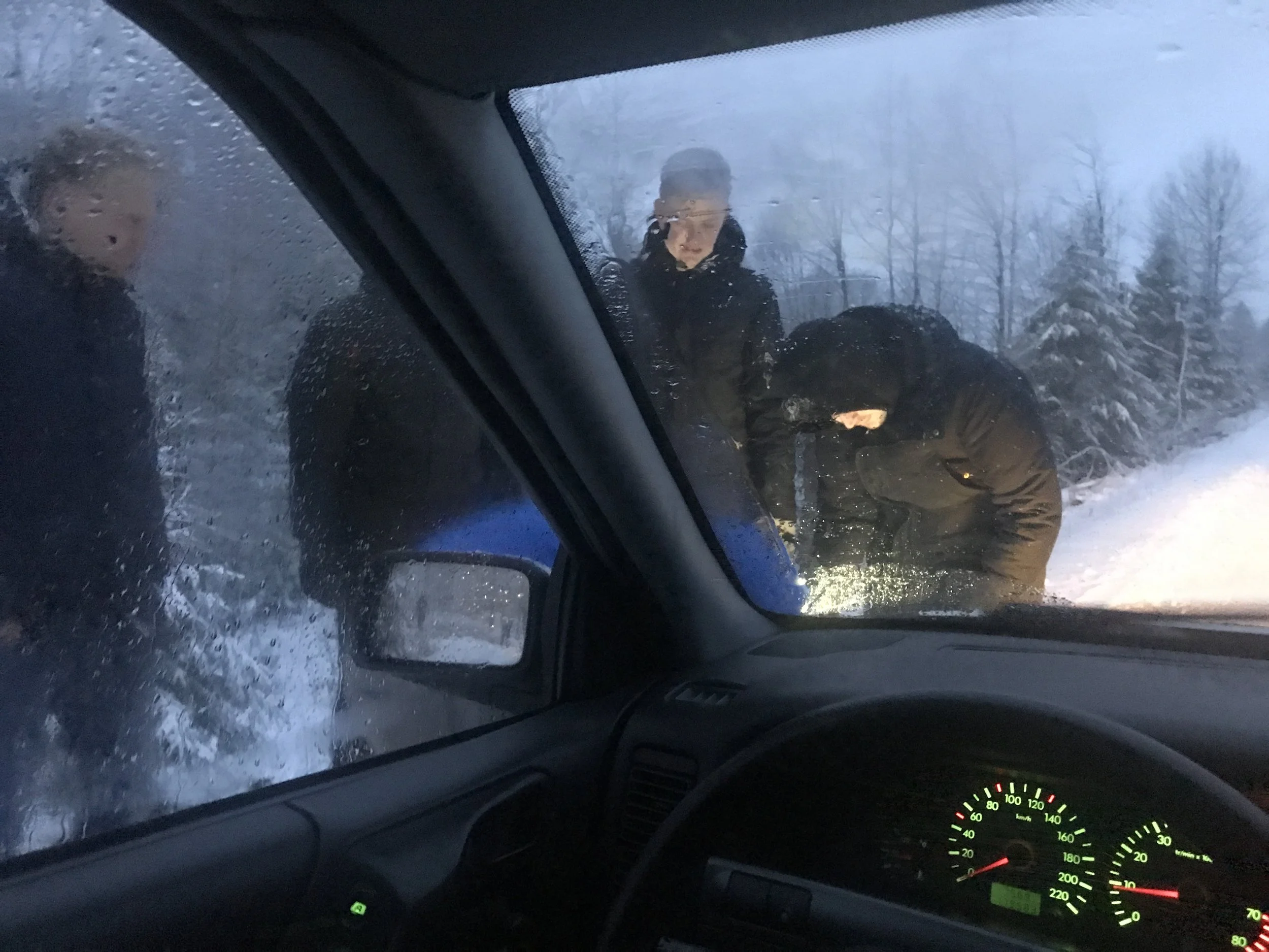 We left Gothenburg at around 8:30 and drove north, where the driving rain slowly turned freezing, and the roads froze into ice. By the late afternoon, the sun had already set - not that we had ever seen it behind full clouds. The freezing rain turned to snow. By the evening the snow was hard and accumulating fast.